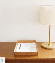 毎日、ランダムに送られてくる封書やDM等は、ひとまず01レタースタンドへ。デスクや、ダイニングテーブル等に無造作に置いてあっても整理しきれないので、一時的に立てて整理して、後で時間のあるときにゆっくり開封。一定期間保管する、手紙やハガキもここで整理しておくと、非常に便利です。